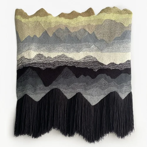 Returning to my roots in Colombia, these tapestries weave narratives of the Andes Mountains, these pieces show how the mountains are part of our daily life here - they're not just a landscape, but part of who we are. Each tapestry tells a story about my homeland and how these mountains connect us all.