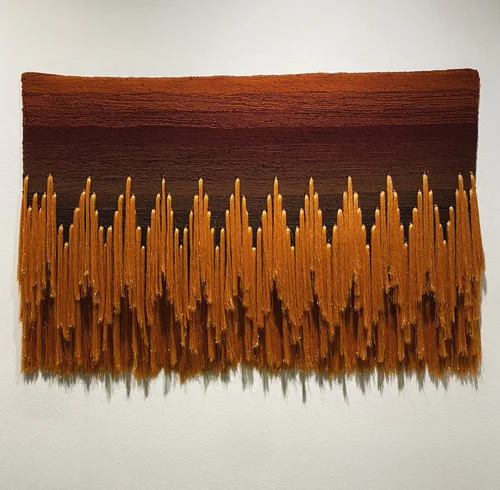 Using textile techniques as a form of expression, I approach yarn and texture as drawing tools, building layered surfaces that embody rhythm, depth, and narrative. Each tapestry captures a moment in time, translating sensory experiences into tactile compositions. The materiality of the work—its raw threads and crafted patterns—creates a dialogue between craft, landscape, and perception. By manipulating color, light, and movement, I reimagine the landscape’s aesthetics and offer a transcendent, multisensory experience that merges the pictorial with the tangible.